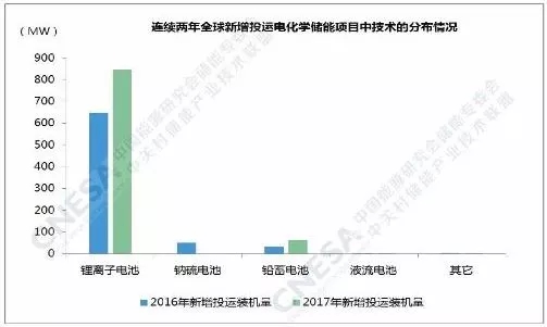 從技術(shù)分布上看,鋰離子電池的功率規(guī)模最大,為845.9MW,比重超過90%,鉛蓄電池功率規(guī)模的同比增速最大,接近100%,是鋰離子電池的三倍之多。