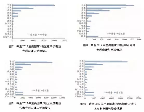 3.我國在鋰離子電池、液流電池領(lǐng)域的專利申請量排名全球首位,且鋰離子電池專利數(shù)量大幅度領(lǐng)先,但在鈉硫電池、鉛酸電池領(lǐng)域與世界技術(shù)強國仍有差距,特別是在鈉硫電池領(lǐng)域,較日本存在差距巨大。