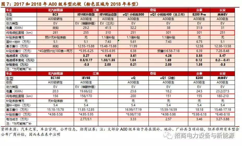 2、升級版A00仍有市場:政策的調(diào)整成為A00級升級的主要動力,電池價格下降和車型升級后帶來的單價提升,導(dǎo)致A00級車對于廠商推廣的積極性而言并未發(fā)生根本性減弱。終端反饋來看,在非限購城市,低價車仍然有較強吸引力,A00級升級車型價格較之前提高約1-2萬元左右,基本維持在5-7萬元區(qū)間,可能仍然具備競爭力。