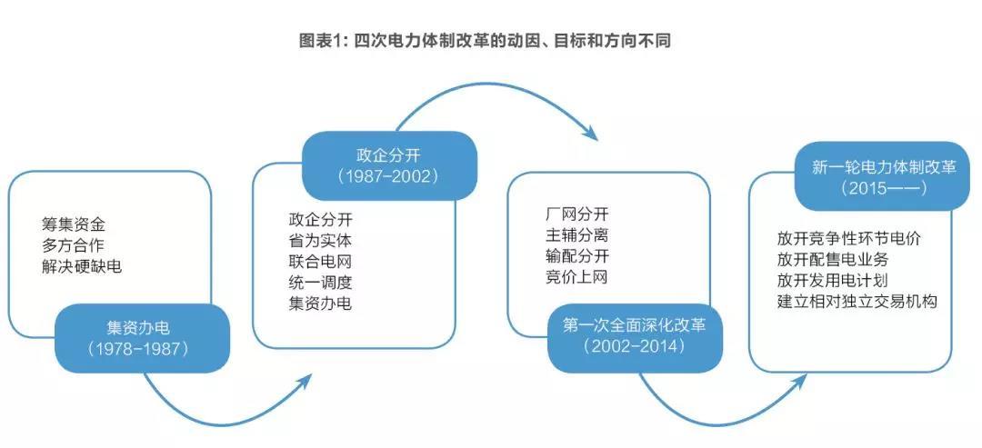 改革的本質(zhì)是打破舊格局、建立新秩序。以1978年改革開放作為起端,我國(guó)電力體制改革先后經(jīng)過(guò)四個(gè)階段,每一個(gè)階段的改革動(dòng)因、改革方法不盡相同。