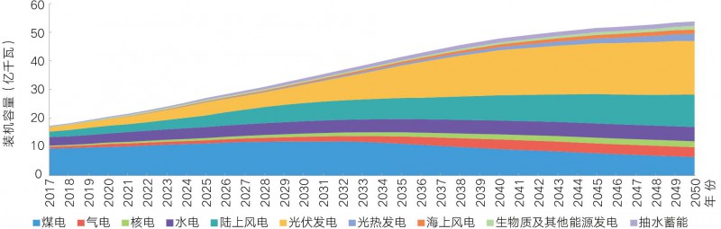陸上風電、光伏發(fā)電將是未來發(fā)展速度最快的電源,2050年兩者裝機占比將超過50%,發(fā)電量占比將達到40%左右。為解決風光大規(guī)模發(fā)展帶來的電力電量平衡與調(diào)峰問題,氣電、水電、核電等并不會因風電、太陽能發(fā)電更具成本優(yōu)勢而停止發(fā)展,但分別受到價格、資源、站址的限制,增長空間有限;煤電完成角色轉(zhuǎn)換后將繼續(xù)發(fā)揮重要作用,各類電源呈現(xiàn)協(xié)調(diào)發(fā)展態(tài)勢。