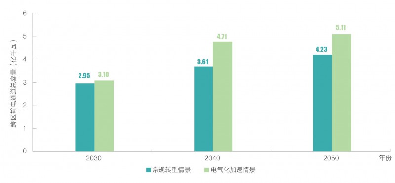 我國跨區(qū)輸電通道容量將持續(xù)增長,2050年將達5億千瓦左右。西北、西南地區(qū)成為主要送端,東中部地區(qū)為主要受端,“西電東送”規(guī)模呈逐步擴大趨勢,并且將以輸送清潔能源為主。電網(wǎng)作為大范圍、高效率配置能源資源的基礎(chǔ)平臺,重要性將愈加凸顯。