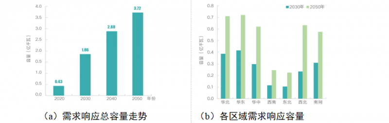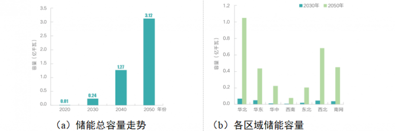 需求側(cè)資源將在未來我國電力系統(tǒng)中發(fā)揮重要作用,能效電廠、需求響應(yīng)容量穩(wěn)步增長,2050年資源規(guī)模將分別達到4.5億千瓦、3.7億千瓦左右。電池儲能在2030年之后迎來快速增長,2050年裝機將達3億千瓦以上。