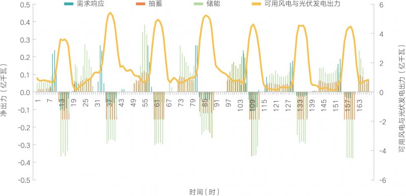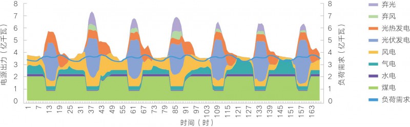 圖14 電氣化加速情景下2050年西北地區(qū)冬季典型周各類電源出力優(yōu)化結(jié)果