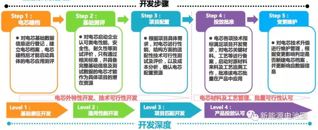對(duì)電芯從外特性到內(nèi)部材料、工藝進(jìn)行分級(jí)開(kāi)發(fā)管理,實(shí)現(xiàn)從應(yīng)用的技術(shù)可行性向產(chǎn)品的批量可行性進(jìn)行評(píng)估管理。