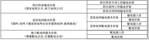 1.按電網(wǎng)層級或經(jīng)營主體,將輸配電價格分為跨區(qū)跨省輸電價格、省級電網(wǎng)服務價格、獨立配電網(wǎng)服務價格。目前,國家電網(wǎng)公司和南方電網(wǎng)公司的總部和各省公司均為獨立法人,各自提供的產(chǎn)品也有明確分界。如,跨區(qū)跨省特高壓線路、西電東送線路、跨省共用網(wǎng)絡(luò)由總部經(jīng)營,省內(nèi)輸、配電服務由各省公司提供。因此,價格應分別設(shè)置。在此輪電改中成立的獨立配電區(qū),未來將逐步增多,其提供的配電產(chǎn)品價格也屬于政府規(guī)制范圍,也需反映在重構(gòu)后的輸配電價格體系中。