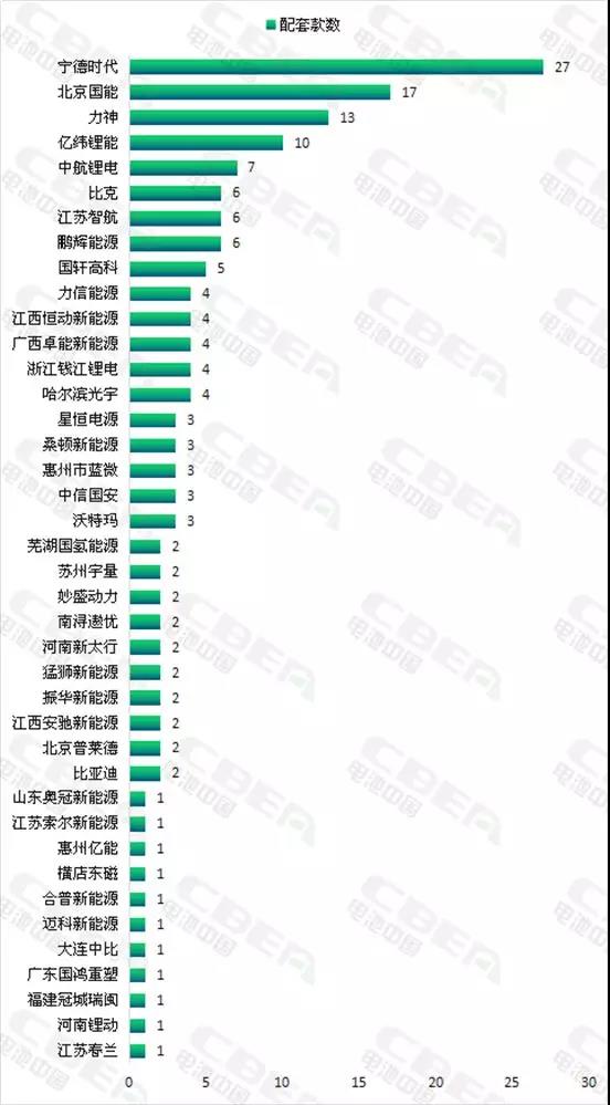 圖一:第306批新車公示新能源車排名前10電池企業(yè)配套情況