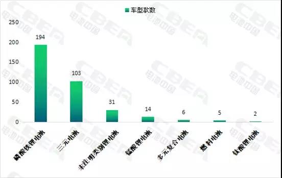從配套電池類別來看,本批公示目錄以磷酸鐵鋰電池和三元電池為主,分別配套194款車型和103款車型,分別占本批公示目錄總車型的54.65%和29.02%,磷酸鐵鋰電池主要應(yīng)用于新能源客車方面,而三元電池主要應(yīng)用于新能源乘用車和新能源專用車方面;未注明類別鋰電池配套31款車型,占比為8.73%;錳酸鋰電池配套14款車型,占比為3.94%;多元復合電池配套6款車型,占比為1.69%,全部應(yīng)用于新能源專用車方面;燃料電池配套5款車型,占比為1.41%;鈦酸鋰電池配套2款車型,占比為0.56%,全部應(yīng)用于新能源客車方面。