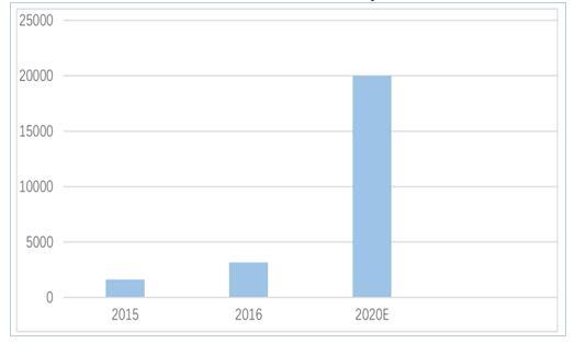 全球石墨烯市場(chǎng)巨大,中國(guó)將成最大消費(fèi)國(guó)。目前全球石墨烯年產(chǎn)能已達(dá)到百噸級(jí),業(yè)內(nèi)預(yù)計(jì)未來五年到十年,石墨烯年產(chǎn)能將達(dá)到千噸級(jí)。鋰電大數(shù)據(jù)統(tǒng)計(jì)顯示,2015年,全球石墨烯市場(chǎng)規(guī)模約為 453 萬(wàn)美元,石墨烯正處于大規(guī)?;跋ΓA(yù)計(jì)到 2020年市場(chǎng)規(guī)??蛇_(dá)到 3.85 億美元,2025 年石墨烯規(guī)模將達(dá) 21.03 億美元。中國(guó)石墨烯產(chǎn)業(yè)聯(lián)盟統(tǒng)計(jì)顯示,中國(guó)石墨烯生產(chǎn)企業(yè)已經(jīng)從 2015 年的300 多家增長(zhǎng)到 2016 年的 400多家,石墨烯產(chǎn)業(yè)規(guī)模從 2015 年的 1630 萬(wàn)美元增長(zhǎng)到2016 年的3842萬(wàn)美元,發(fā)展態(tài)勢(shì)喜人。隨著石墨烯量產(chǎn)的解決和石墨烯下游的拓展,產(chǎn)業(yè)聯(lián)盟預(yù)計(jì)中國(guó) 2020 年石墨烯市場(chǎng)規(guī)模將達(dá)到 2 億美元,占世界市場(chǎng)規(guī)模超過一半,成為全球最大的石墨烯消費(fèi)國(guó)家。