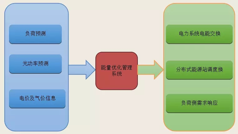 上圖是能源管理的系統(tǒng)結(jié)構(gòu)圖,系統(tǒng)將電動(dòng)汽車充電站、樓宇能源綜合管控、燃?xì)廨啓C(jī)組、分布式光伏發(fā)電、用電量采集等數(shù)據(jù)上傳到高郵新區(qū)的能源管理中心,然后通過(guò)能量管理中心和主電網(wǎng)進(jìn)行協(xié)調(diào)控制。