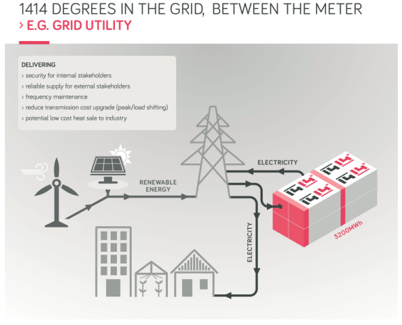 在連接電網(wǎng)情況下使用的1414 Degrees公司的儲能系統(tǒng)示意圖