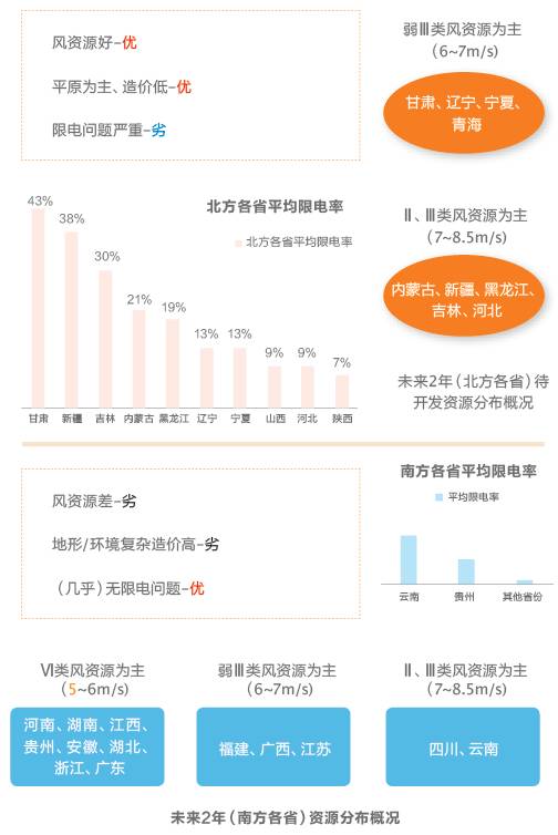 相較于北方棄風(fēng)限電的嚴(yán)峻形勢,南方地區(qū)則存在項(xiàng)目收益水平缺乏彈性的問題。據(jù)不完全統(tǒng)計(jì),南方已規(guī)劃平均風(fēng)速中位數(shù)為5.57m/s,90%置信概率區(qū)間統(tǒng)計(jì),平均風(fēng)速為5.02m/s。新疆金風(fēng)科技股份有限公司執(zhí)行副總裁曹志剛在中國風(fēng)電產(chǎn)業(yè)創(chuàng)新發(fā)展研討會上表示:“南方平均風(fēng)速低,導(dǎo)致等效發(fā)電小時(shí)數(shù)下降,項(xiàng)目整體收益水平下降且更加沒有彈性?!?