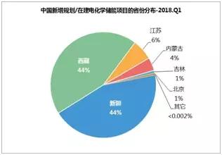 2018年一季度,由于中國新增投運電化學(xué)儲能項目的裝機規(guī)模較小,因此這里僅對新增規(guī)劃/在建項目進(jìn)行分析。