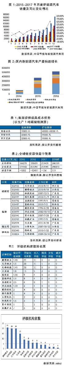 2017年供應微幅短缺136噸,處于緊平衡狀態(tài),目前電池級碳酸鋰價格較年初上漲6.5%至14萬,鋰鹽價格中樞維持偏強概率較大。隨著占據(jù)大部分推薦車型的第三、四批補貼目錄出臺,政策穩(wěn)步推進,從目前鋰鹽生產(chǎn)商排產(chǎn)及訂單情況來看,新能源汽車在二季度之后銷量增速或逐月抬升,全年來看,或出現(xiàn)前低后高態(tài)勢,并且3萬公里非個人用戶的補貼要求,可能會導致物流車、客車等在7-8月份搶裝,鋰鹽價格持續(xù)上漲動力較強。