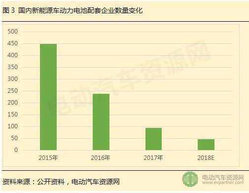 行業(yè)集中度加強(qiáng)的背后是2018年動(dòng)力電池行業(yè)競(jìng)爭(zhēng)更加殘酷,兼并整合將成為趨勢(shì)。動(dòng)力電池專家王子冬曾表示:“2015年,動(dòng)力電池配套企業(yè)有450家;2016年,減少到240家;2017年僅有96家,預(yù)計(jì)2018年還會(huì)減一半?!?