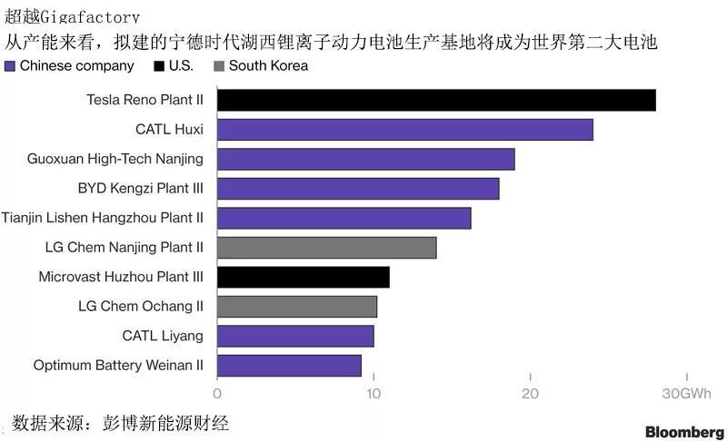 彭博新能源財經(jīng)在2017年11月的報告中稱,這家工廠將把總產(chǎn)量提高到41.5千兆瓦時,超過LG化學(xué)的產(chǎn)量。相比之下,特斯拉的超級工廠將擁有35千兆瓦時的產(chǎn)能。