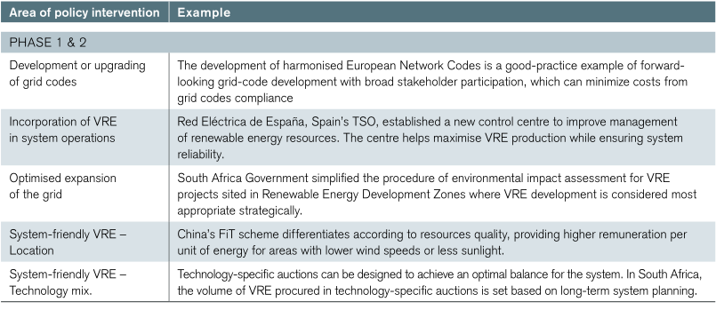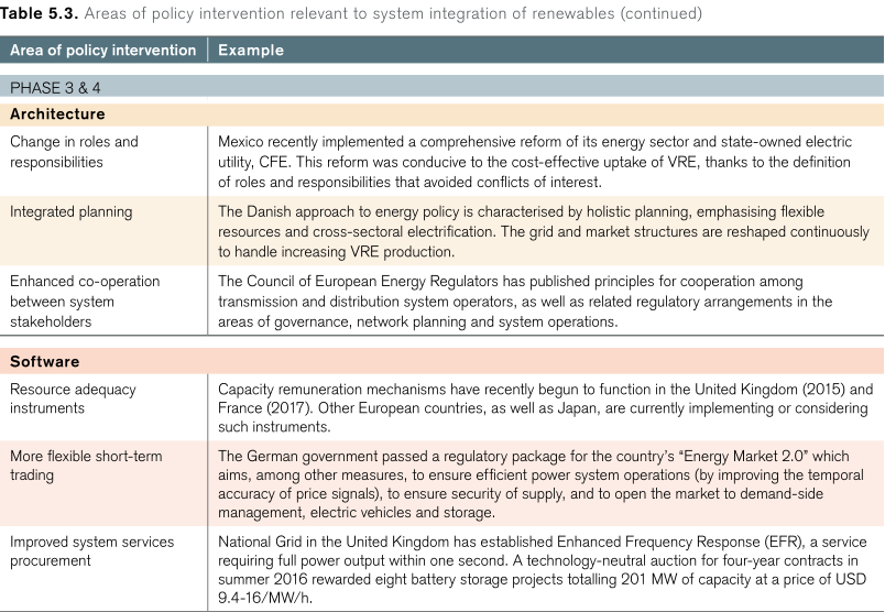 表5.3顯示按電力系統(tǒng)階段和層次分列的政策干預(yù)領(lǐng)域,并舉例說(shuō)明。