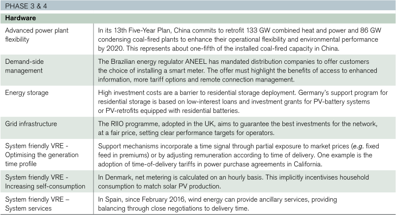 負(fù)責(zé)能源部門(mén)規(guī)劃的決策者應(yīng)評(píng)估最具成本效益的解決方案組合,以處理多種可再生能源高份額系統(tǒng)中能源生產(chǎn)的易變性。這些可供選擇的方案涵蓋電網(wǎng)基礎(chǔ)設(shè)施(燃料、電力、局域供熱網(wǎng))、固定的長(zhǎng)期和短期儲(chǔ)能、多能互補(bǔ)(電動(dòng)車(chē)輛、合成燃料、電加熱等)和能效措施。政策應(yīng)根據(jù)技術(shù)的實(shí)際環(huán)境效益和成本對(duì)其進(jìn)行評(píng)估。成本效益高的多能互補(bǔ)機(jī)制要求更好地監(jiān)測(cè)和控制電力的使用地點(diǎn)、時(shí)間和方式。管理一個(gè)多種可再生能源高度互相滲透的復(fù)雜的系統(tǒng),數(shù)字化是必不可少的。為了促進(jìn)數(shù)字化的整體智能充電,監(jiān)管機(jī)構(gòu)和政策制定者必須讓業(yè)務(wù)模式,以便為大量用戶提供基于時(shí)間的價(jià)格信號(hào)、控制信號(hào)以及數(shù)據(jù)分析等內(nèi)容。