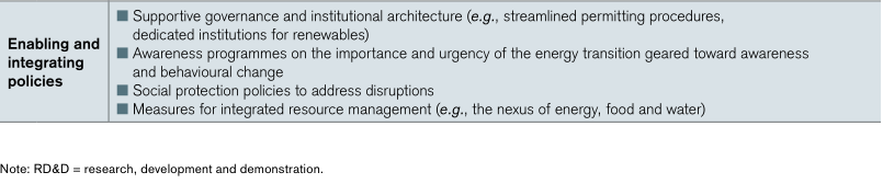 實(shí)現(xiàn)能源轉(zhuǎn)型,需要的不僅僅是針對(duì)能源部門(mén)制定的政策更為全面。能源領(lǐng)域的迅速變化需要一種新的政策分類方式,這涉及到能源系統(tǒng)的轉(zhuǎn)變和它賴以生存的社會(huì)經(jīng)濟(jì)結(jié)構(gòu)的轉(zhuǎn)變。這期間的政策需要采取綜合辦法,兼顧這兩個(gè)方面。隨著可再生能源從利基轉(zhuǎn)向主流,推動(dòng)轉(zhuǎn)型的政策不僅必須涵蓋可再生能源的部署,還必須納入影響可持續(xù)性和轉(zhuǎn)型速度的更廣泛的能源系統(tǒng)和經(jīng)濟(jì)政策。