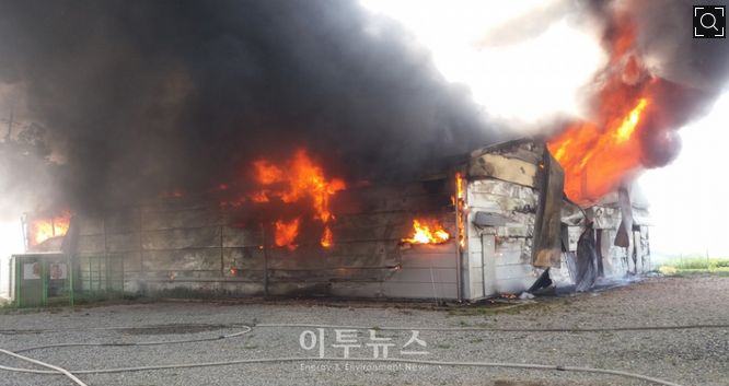 據了解,與此相關的合作公司表示,更換電池控制系統(tǒng)(BMS)后,準備重新連接電池和PCS的瞬間響起爆炸聲,同時開始著火,燒毀了模塊和所有裝備。有段時間該火災火焰高達幾十米高度,燒毀708㎡規(guī)模臨時建筑和3500多個電池,據消防署推算,經濟損失達到46億韓元。投入20多輛消防車和100多名消防人員,歷經3個多小時才成功撲滅。