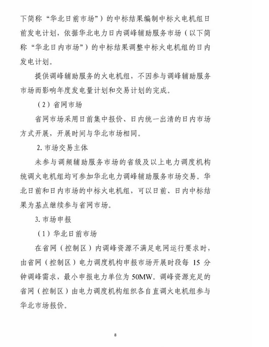 中國(guó)儲(chǔ)能網(wǎng)訊:國(guó)家能源局華北監(jiān)管局3月5日發(fā)布了《華北電力輔助服務(wù)市場(chǎng)建設(shè)方案(征求意見(jiàn)稿)》,并下發(fā)國(guó)網(wǎng)北京市、天津市、冀北、河北省電力有限公司,內(nèi)蒙古電力(集團(tuán))有限公司,華北區(qū)域各有關(guān)發(fā)電企業(yè)征求意見(jiàn)。據(jù)了解,目前已經(jīng)完成了意見(jiàn)征集,正在進(jìn)行細(xì)節(jié)的編寫,這標(biāo)志著華北電力輔助服務(wù)市場(chǎng)即將啟動(dòng)。