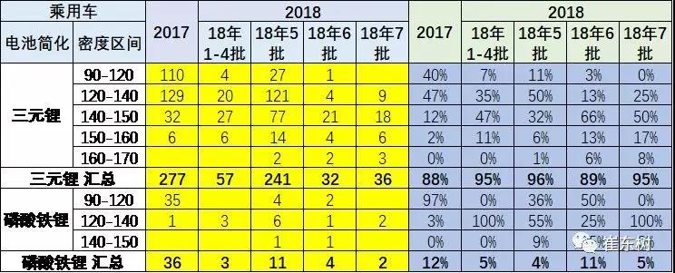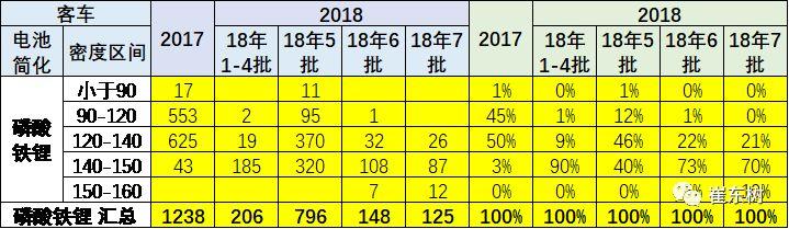以上為純電動(dòng)且非快充的電池的特征。18年純電乘用車的能量密度的提升也是較快,但18年第7批乘用車車高于120的占到100%,140-150瓦的純電三元電池的達(dá)到50%。