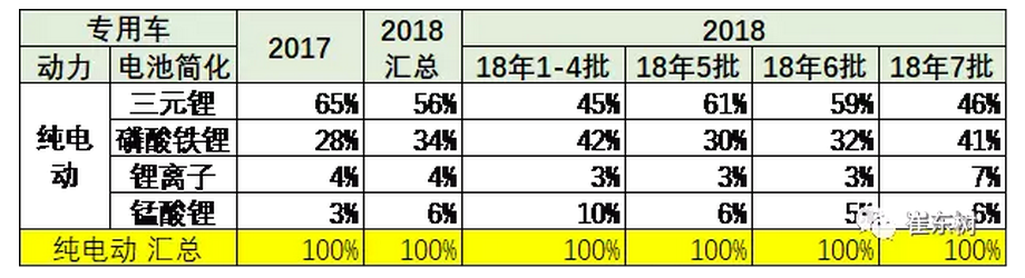 專用車的目錄是磷酸鐵鋰和三元鋰的共同推動(dòng),18年第1-4批的磷酸鐵鋰達(dá)到50%雖是偏高,低成本需求依舊相對(duì)較多。第二批的磷酸鐵鋰也是很多。