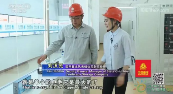 劉漢民:這是我們目前最大的一塊單體鋰電池,它是200安時,也就是0.6度電,相當于手機電池40到50塊,現(xiàn)在全站大概儲電是8萬多度。
