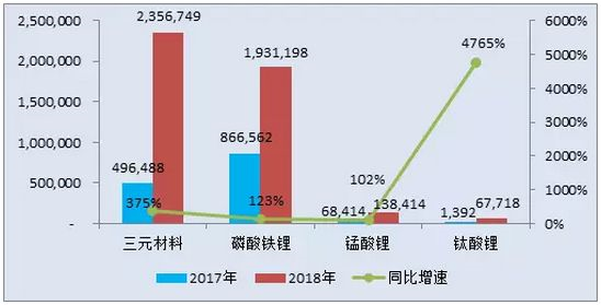 從數(shù)據(jù)看來,似乎三元鋰與磷酸鐵鋰目前平分天下,磷酸鐵鋰的份額還要更高一些。但從2018年前四個月的情況來看,三元鋰已經(jīng)開始超越磷酸鐵鋰,大有加速增長的態(tài)勢。