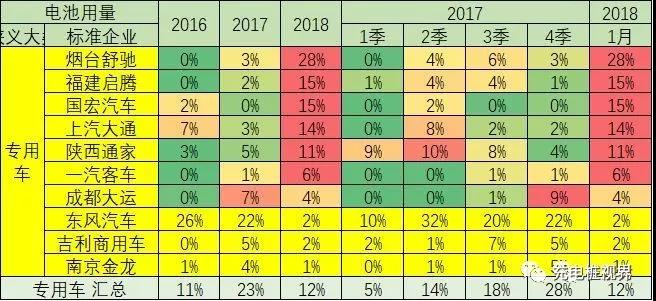 專用車的電池用量逐步增大,18年成為市場的主力,1月的煙臺舒馳表現(xiàn)較強,份額達到28%,福建啟騰也達到15%,表現(xiàn)很好。