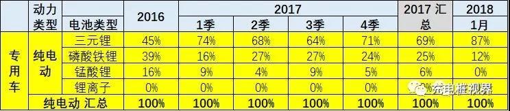 專用車的三元化趨勢很明顯。17年的三元電池的裝車量達到69%的占比,而16年的占比是37%。18年三元提升的趨勢相對是合理的狀態(tài),1月達到87%也是很好的趨勢。
