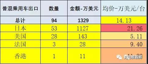 2017年,中國對外出口的混合動力乘用車94臺,出口國家也是以日本美國法國等發(fā)達國家為主,尤其是以日本為代表的混合動力數(shù)量較多,而且價格相對較高。