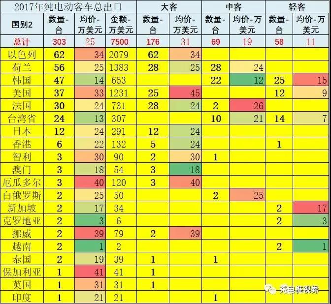 純電動客車2017年出口總體達到303臺,出口金額達到7500萬美元,均價達到25萬美元。