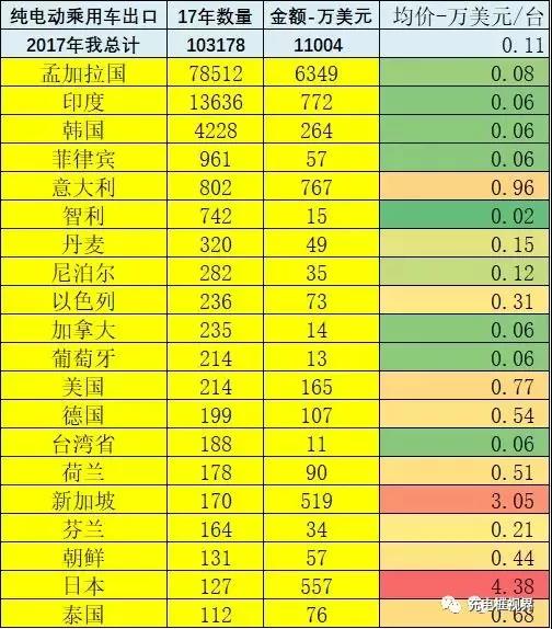 純電動車的出口,總體來看數(shù)量極大,達到了10萬臺的表現(xiàn),出口金額達到了一億美元的一個水平,平均出口單價,達到了0.11萬美元/臺。