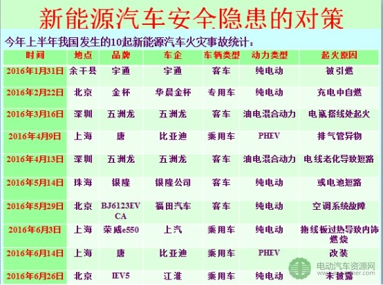 針對去年頻繁發(fā)生的起火事故,2015年8月6日,工信部發(fā)布《關于開展節(jié)能與新能源汽車推廣應用安全隱患排查治理工作的通知》,通知顯示,近期個別地區(qū)出現(xiàn)純電動客車、混合動力客車自燃事故。為吸取教訓,預防類似事故再次發(fā)生,在各節(jié)能與新能源汽車推廣應用城市、節(jié)能與新能源汽車生產(chǎn)企業(yè)開展安全隱患排查治理工作。通知要求,各示范城市要對自2009年以來推廣應用的節(jié)能汽車、新能源汽車,對充電基礎設施,對公共領域推廣應用的節(jié)能汽車、新能源汽車,對節(jié)能汽車、新能源汽車停放及電池箱的存放場地及配套管理措施進行調(diào)查。