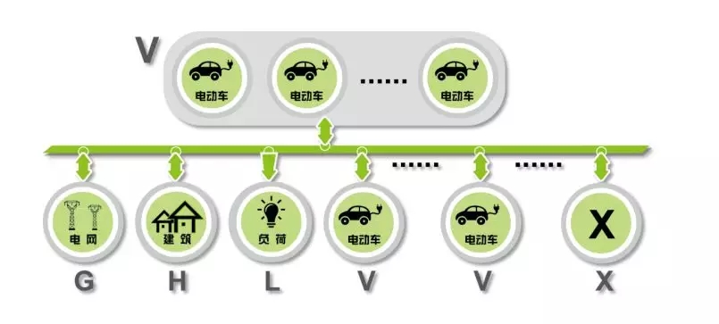 在這樣的系統(tǒng)里面,不得不提到車的作用。電動汽車是未來的發(fā)展趨勢,這里引用國網(wǎng)提出的電動汽車V2G的概念,V2G就是車對電網(wǎng)放電的意思,引進(jìn)直流母線之后,就不用先V2G,然后再G到負(fù)荷了,直接就可以V2H或者V2L,這樣就形成了一個新的概念 “V2X”,即通過直流側(cè)的交互,做到源-網(wǎng)-荷-儲-車的友好互動,實(shí)現(xiàn)車對多種能源直接充放電的管理。