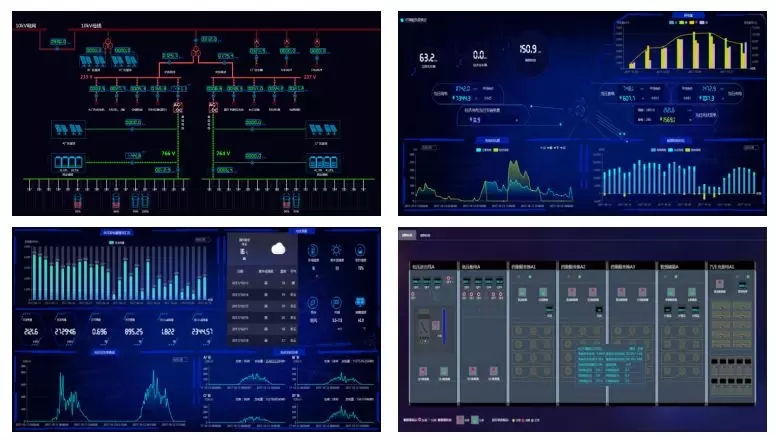 顯示監(jiān)視園區(qū)的電壓、電流、功率等實(shí)時電參量,直觀顯示系統(tǒng)運(yùn)行工況