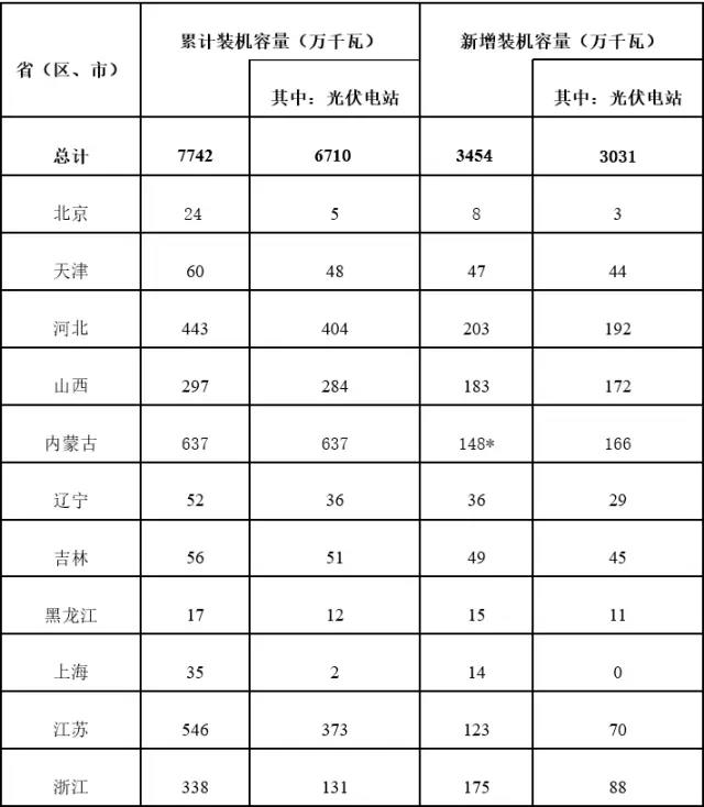 *注:2015年內蒙古、新疆的分布式發(fā)電統(tǒng)計數(shù)據(jù)存在誤差,分別為18萬和4萬千瓦,在本表數(shù)據(jù)中進行了相應核減,故兩省新增裝機容量小于其光伏電站裝機容量。
