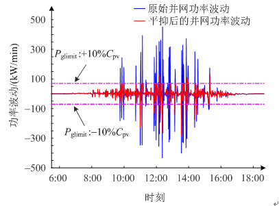 和儲能PCS的充放電功率,通過光伏和儲能的協調配合,將光伏并網功率波動抑制在電網允許范圍內。