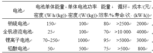 從表1中可以看出,在實(shí)際工程應(yīng)用當(dāng)中,鋰離子電池、鈉硫電池、液流電池等均可作為電池儲能系統(tǒng)的組成單元[13-14]。它們因其不同的安全性、能量密度、循環(huán)壽命和成本等(如表2所示)具有不同的應(yīng)用場景。