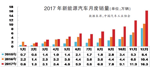 “從純電動汽車廠家銷量走勢上來看,比亞迪占據(jù)了絕對領(lǐng)先位置,然而在10月至12月期間,北汽新能源超過了比亞迪成為了銷量冠軍?!背寺?lián)會秘書長崔東樹表示,“新能源汽車為2017年的汽車市場增長貢獻(xiàn)近半,且實(shí)現(xiàn)了貫穿全年的持續(xù)增長?!?