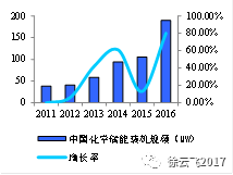 2016年我國化學(xué)儲能裝機量為189.4MW,同比增長達79.5%。與其他儲能方式相比,電化學(xué)儲能具有設(shè)備機動性好、響應(yīng)速度快、能量密度高和循環(huán)效率高等優(yōu)勢,是當(dāng)前國內(nèi)外儲能研究的熱點。