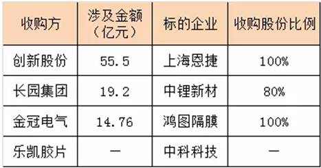 繼2016年,勝利精密收購蘇州捷力、雙杰電氣控股東皋膜后,2017年資本對隔膜領(lǐng)域的攻勢更加瘋狂。一方面,國內(nèi)市場大型收購案例增多,且涉及金額巨大(均超10億元),收購動作更加迅速(主要收購案都集中在上半年),私下積極接觸意向隔膜標的的企業(yè)無計。