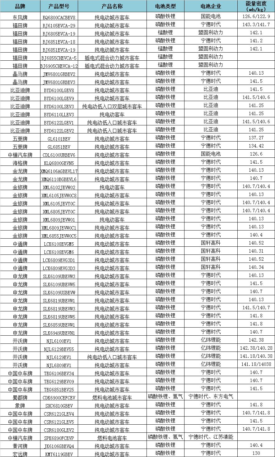 在入圍的55款新能源客車車型中,純電動客車有51款,插電式混合動力客車和燃料電池客車均各2款。其中,搭載磷酸鐵鋰電池的車型有51款(燃料電池車型同時搭載磷酸鐵鋰電池),錳酸鋰電池車型有4款,燃料電池車型有2款。