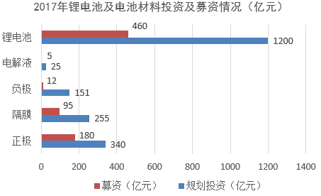 值得一提的是,雖然動力電池行業(yè)形勢愈發(fā)嚴(yán)峻,但2017年依然吸引了大量資金投入。不過,羅煥塔提醒道:“產(chǎn)業(yè)鏈規(guī)劃總投資接近2000億元,實際投資不到800億元,主要集中在上游礦產(chǎn)材料、正極材料、隔膜、動力電池等領(lǐng)域。”見下圖: