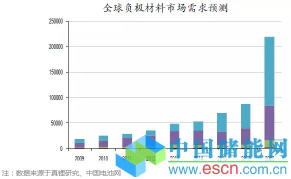 硅合金和鈦酸鋰等負極新材料有望大幅提高產(chǎn)品性能。隨著鋰電池交通工具以及儲能領(lǐng)域的快速增長,由于石墨類負極的高性價比,未來2~3年石墨類負極材料仍會作為主流,我們預(yù)計產(chǎn)量將保持年20%左右的增長。天然石墨主要用在數(shù)碼產(chǎn)品及筆記本電腦上,人造石墨多用于交通工具領(lǐng)域,其增長速度會高于負極材料的增長速度。而天然石墨的增長會低于負極材料的增長速度。從技術(shù)來講,石墨負極材料的性能逐漸趨于理論值,如石墨的克容量為372mAh/g,目前部分廠家產(chǎn)品可以達到365mAh/g,由于生產(chǎn)工藝和固有缺陷,這已經(jīng)基本達到極限值。