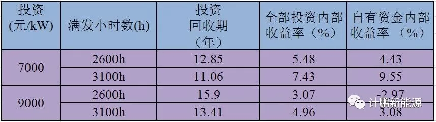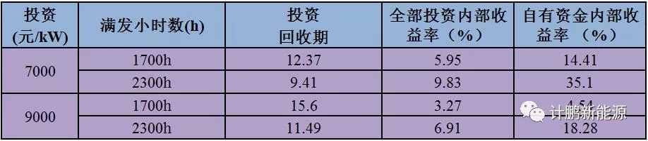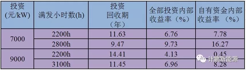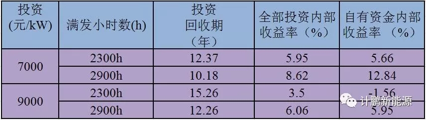 Ⅱ類電價(jià)區(qū)的滿發(fā)小時(shí)數(shù)在2300h-2900h之間。通過測算,經(jīng)濟(jì)性指標(biāo)匯總結(jié)果匯總?cè)绫?所示: