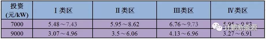 Ⅳ類電價(jià)區(qū)的25年平均滿發(fā)小時(shí)數(shù)為1700h-2300h。經(jīng)計(jì)算經(jīng)濟(jì)性指標(biāo)參數(shù)結(jié)果匯總?cè)绫?所示: