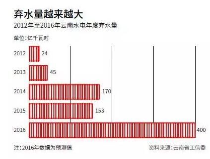 云南省是中國的水電大省,省內(nèi)瀾滄江、金沙江、怒江的干支流上密布千家水電站。2012年后,云南省水電裝機上馬速度不斷加快,發(fā)電能力開始嚴(yán)重過剩,當(dāng)年棄水量就達(dá)到24億千瓦時,到2016年預(yù)計水電富余量達(dá)到400億千瓦時。水電裝機約占云南全省電力總裝機的75%,全省發(fā)電能力已超過省內(nèi)電力需求的四五倍之多。