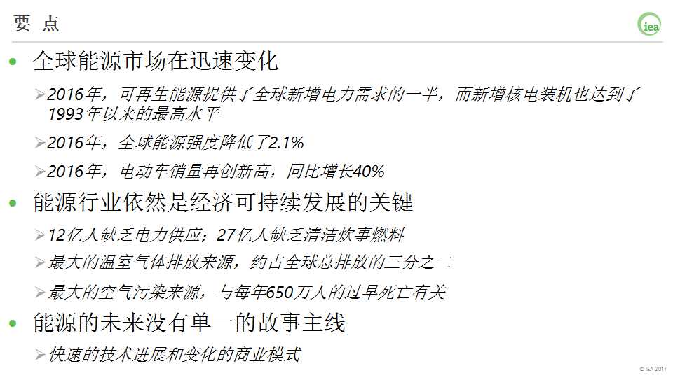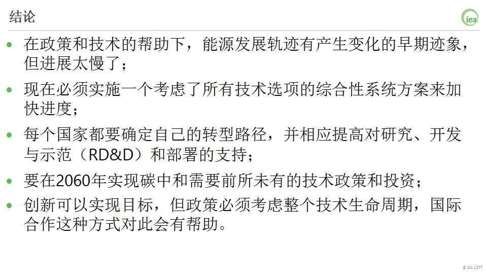 現(xiàn)在,我想總結(jié)一下《能源技術(shù)展望2017》報告的幾個主要結(jié)論: